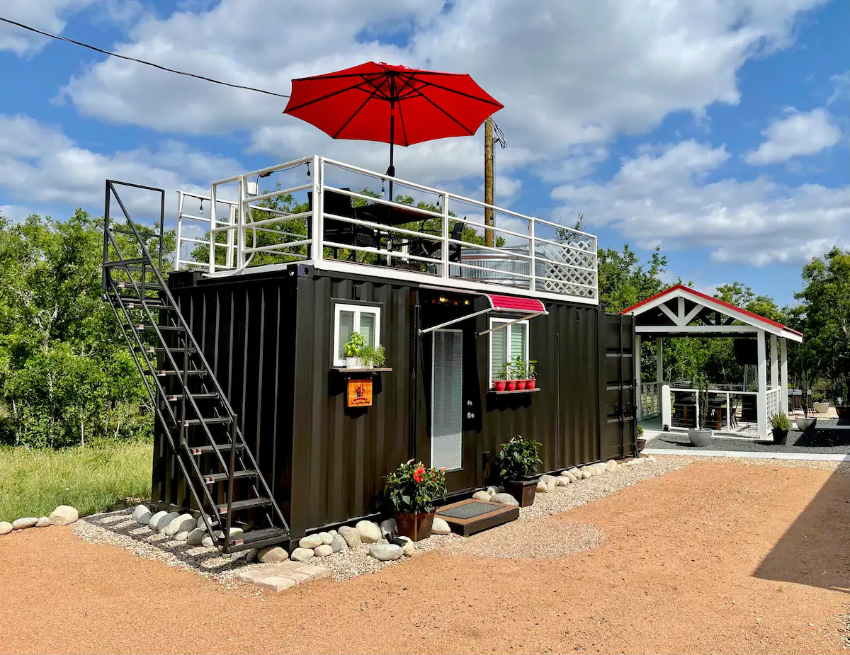 Our Dripping Springs model is our take on a shipping container cabin and goes well with a rooftop deck. While many use this as a hunting cabin or vacation getaway, it can be used for a living space just like our other models.